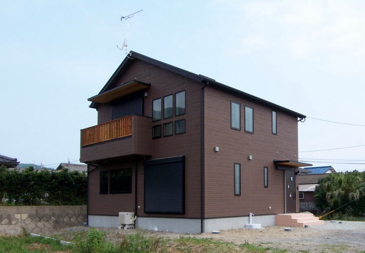 海岸近くの田園地帯に建つ2階建て木造住宅