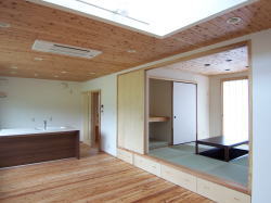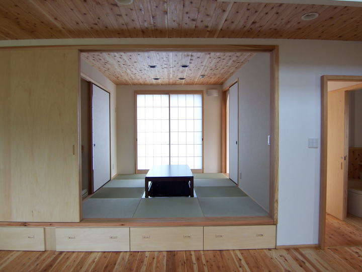 内観2: 床、天井 杉板仕上げ、壁 クロス仕上げ