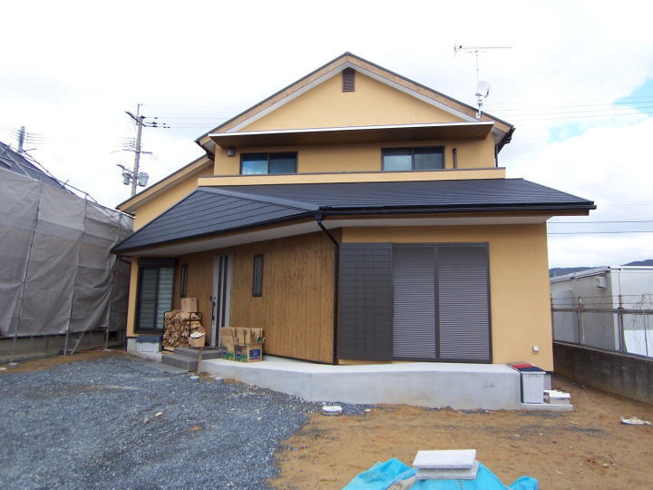 外壁: モルタルリシン吹きつけ、一部杉板縦張り