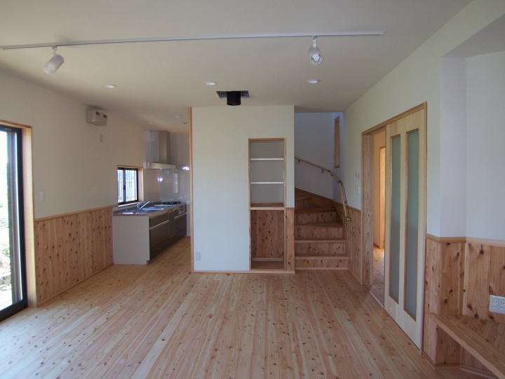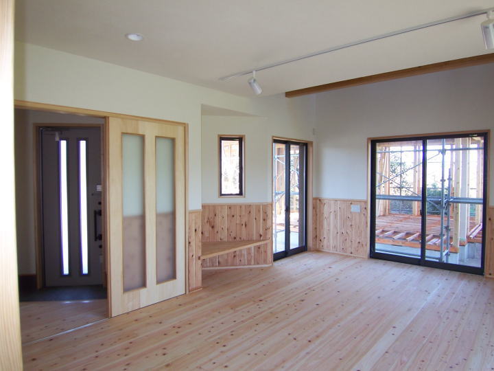 木の家整備促進事業による補助金対象に選定された家で、地元の木をふんだんに使用した長期優良住宅です。