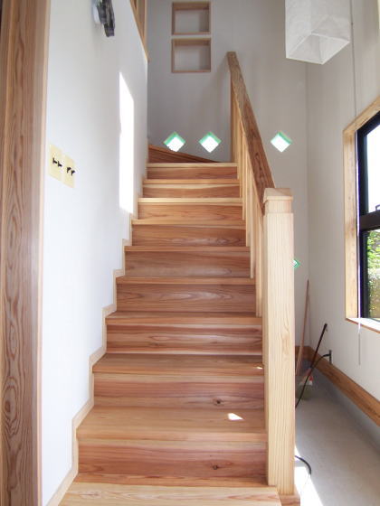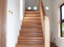 土間階段: 玄関が土間になっておりそこから2階へ杉板の階段が続きます。